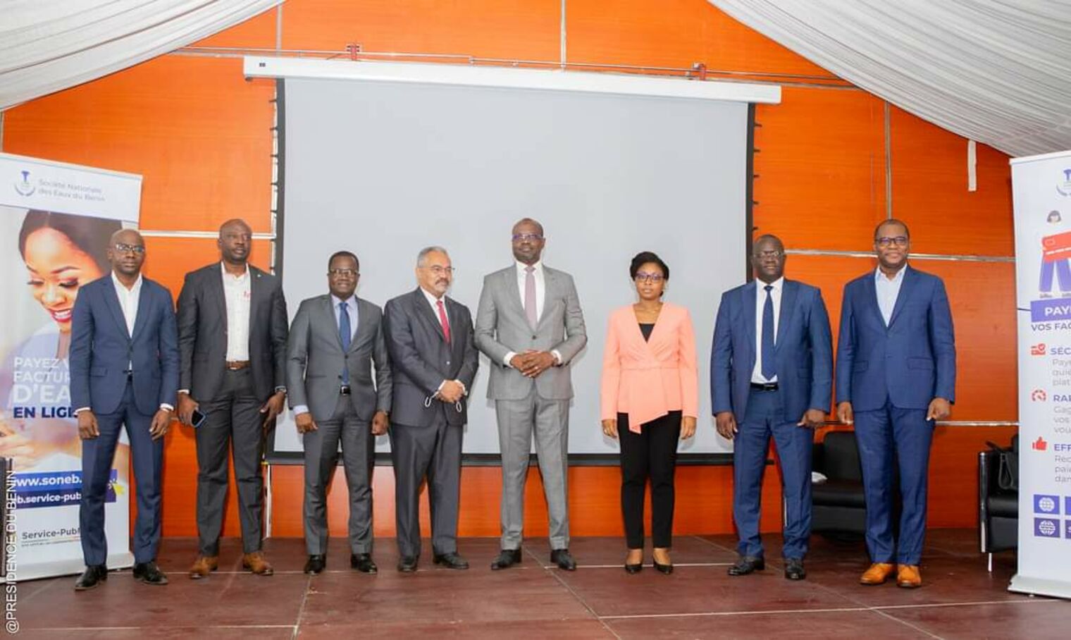 Le lundi 14 mars 2022, au Bénin Royal Hôtel de Cotonou, s'est tenue la cérémonie de lancement officiel du service de paiement en ligne des factures d'eau de la SONEB. Une cérémonie qui a été co-présidée par Monsieur Samou Seidou ADAMBI et Madame Aurelie ADAM SOULE ZOUMAROU, respectivement, ministre de l'Eau et des Mines et ministre du Numérique et de la Digitalisation.