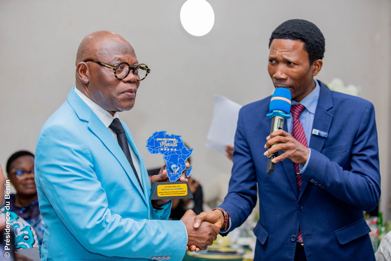 Au cours de la cérémonie, le Ministre KARIMOU a été honoré pour la deuxième fois par l’Ordre Mondial des Grands Bâtisseurs (OMGB), qui lui a décerné le Certificat de Mérite des Grands Bâtisseurs et le trophée Africa Great Builders Awards pour la qualité de son management à la tête du MEMP. Déjà lauréat d’une première distinction en 2021, le Ministre voit ainsi son action de nouveau saluée à l’échelle africaine.